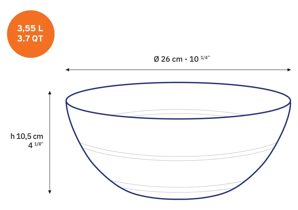 Ultra-pratique car parfaitement empilable, il n’en est pas moins esthétique avec sa jolie forme bombée et ses deux traits si singuliers. Un pour chacune de vos envies : de la coupelle à sauce au punch en passant par la salade familiale!